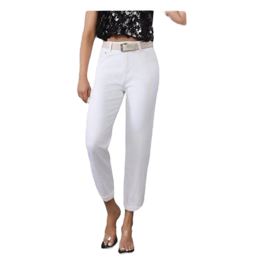 MISS GOOD Γυναικείο Jean Παντελόνι Mom Fit με Ζώνη Λευκό
