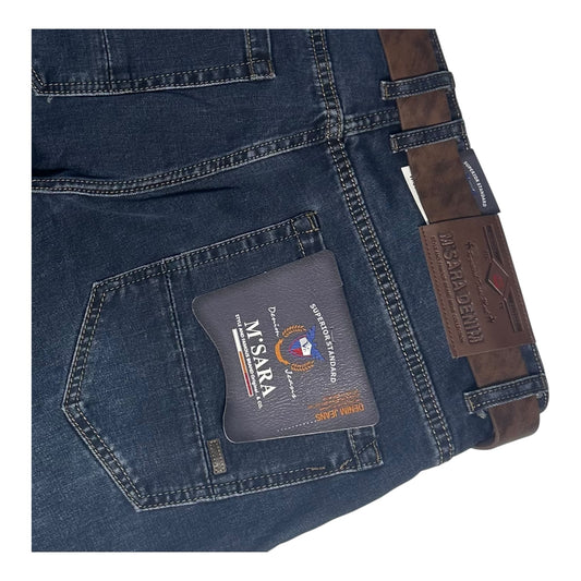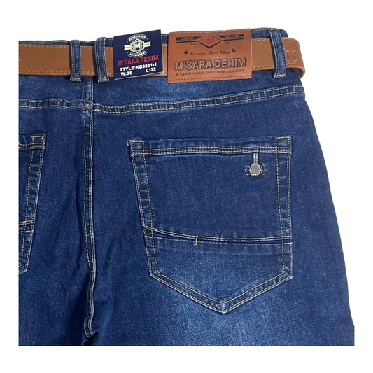 M’SARA Ανδρικό Τζιν Παντελόνι Με Ζώνη Μπλε