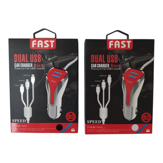 Φορτιστής Αυτοκινήτου με Θύρες: 2xUSB μαζί με Καλώδιο Type-C / Micro-USB Λευκό