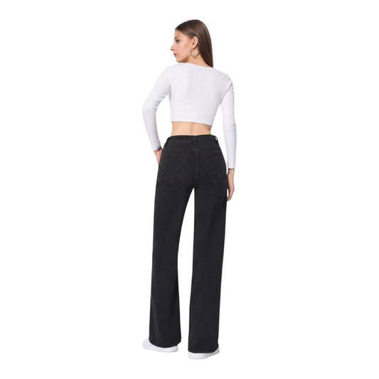 MISS GOOD Γυναικείο Τζιν Ίσιο γραμμή Μαύρο