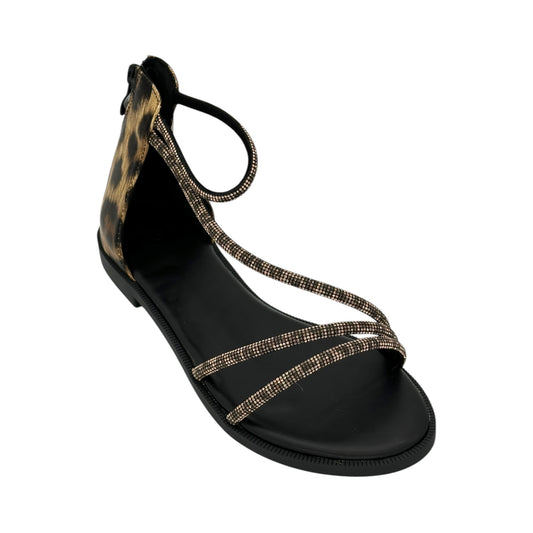 DIAMANTIQUE Γυναικεία Σανδάλια Flat με Στρας λεοπάρ