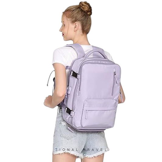 Υφασμάτινο Σακίδιο Πλάτης Αδιάβροχο με Θύρα USB Λιλά 32lt PS2811
