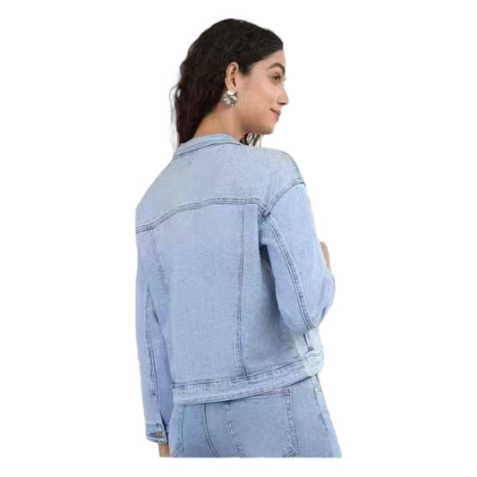 Miss Good Γυναικείο Τζιν Μπουφάν με Στρας Μπλε