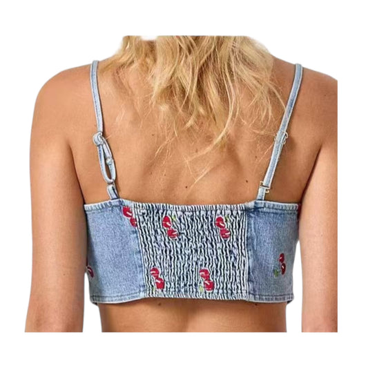 ADORO Γυναικείο Denim Crop Top με Κέντημα Cherry Μπλε