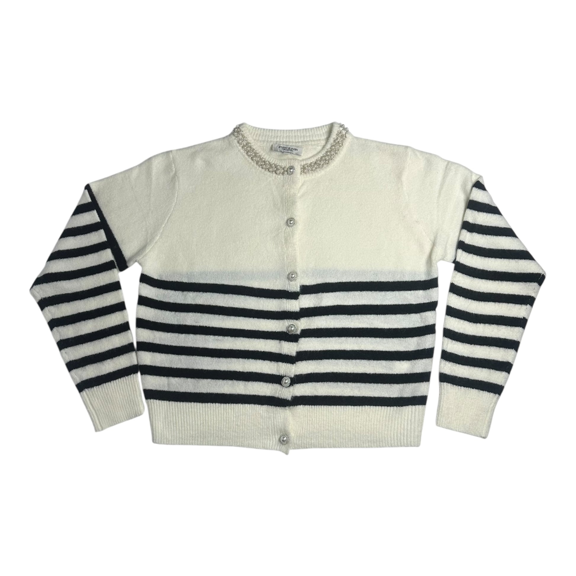 Η γυναικεία ζακέτα προσφέρει άνεση και στυλ για όλες τις ώρες. Με ριγέ μοτίβο, στρογγυλή λαιμόκοψη με διακοσμητική λεπτομέρεια και κουμπιά στο μπροστινό μέρος, αποτελεί ιδανική επιλογή για casual και κομψές εμφανίσεις.