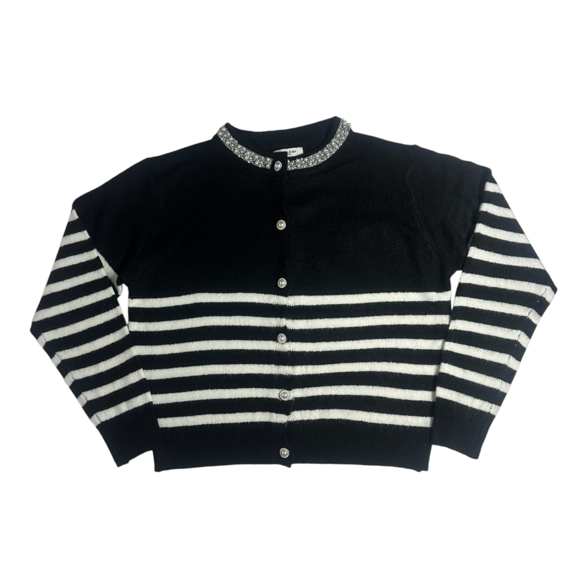 Η γυναικεία ζακέτα προσφέρει άνεση και στυλ για όλες τις ώρες. Με ριγέ μοτίβο, στρογγυλή λαιμόκοψη με διακοσμητική λεπτομέρεια και κουμπιά στο μπροστινό μέρος, αποτελεί ιδανική επιλογή για casual και κομψές εμφανίσεις.