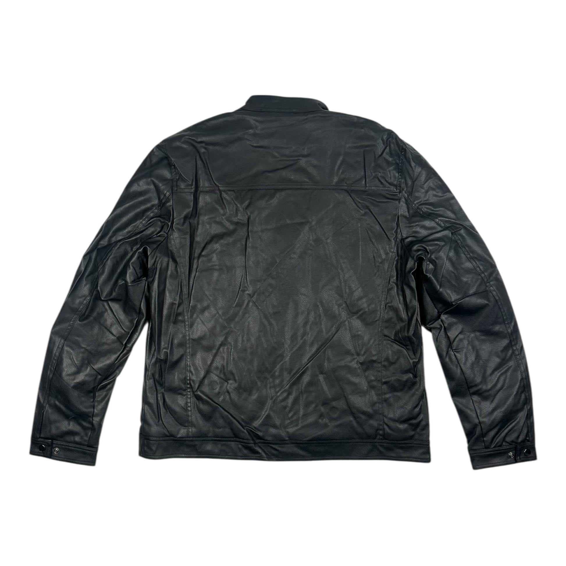 Ανδρικό μπουφάν τύπου bomber σε μαύρο χρώμα και υφή δερματίνης. Διαθέτει φερμουάρ μπροστά, πλαϊνές τσέπες με φερμουάρ και εσωτερική επένδυση για άνεση και προστασία από το κρύο. Ένα διαχρονικό κομμάτι που συνδυάζεται εύκολα με κάθε casual εμφάνιση.