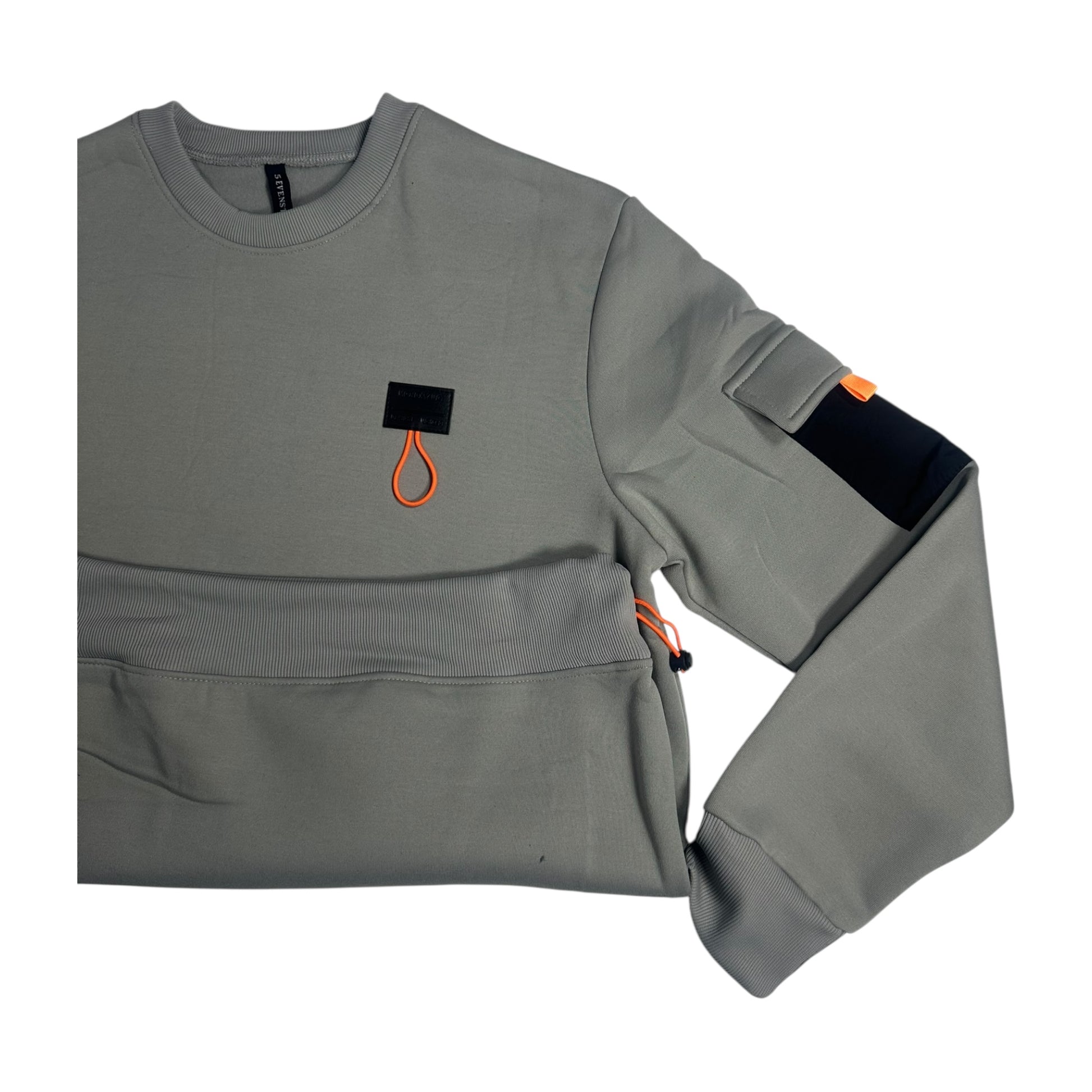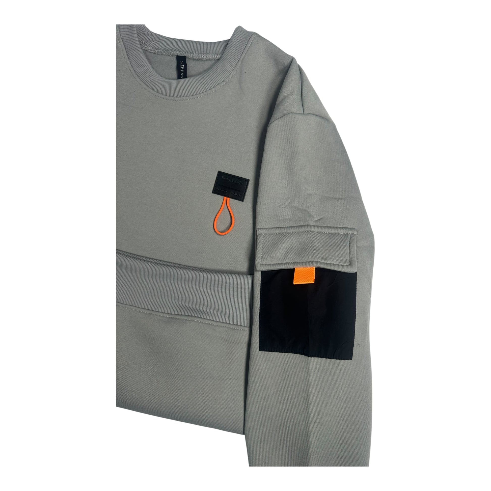 Ανδρική μπλούζα φούτερ της εταιρίας ANGEL SHOPPING σε γκρι χρώμα, ιδανική για καθημερινή χρήση. Διαθέτει στρογγυλή λαιμόκοψη, μακριά μανίκια με ριμπ τελείωμα και διακοσμητικές λεπτομέρειες με πορτοκαλί στοιχεία στο στήθος και το μανίκι. Το άνετο κόψιμο προσφέρει ευκολία στην κίνηση και στυλ σε κάθε περίσταση.
