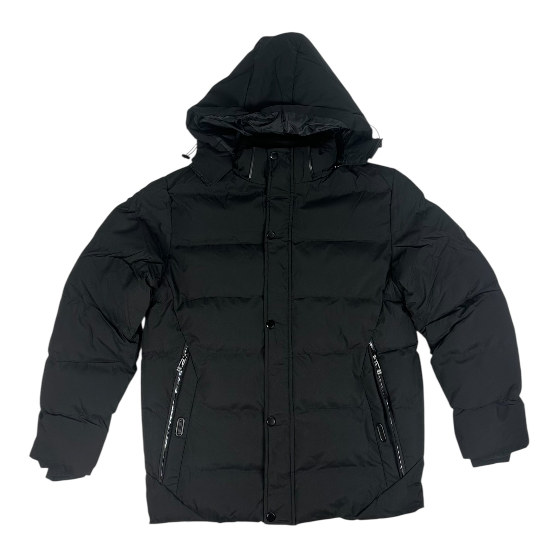 Ανδρικό μπουφάν της εταιρίας ANGEL Shopping σε μοντέρνο puffer σχέδιο. Διαθέτει κουκούλα με φερμουάρ, η οποία μπορεί να αφαιρεθεί εύκολα, προσφέροντας ευελιξία ανάλογα με τις καιρικές συνθήκες. Περιλαμβάνει φερμουάρ και κουμπιά κατά μήκος, πλαϊνές τσέπες με φερμουάρ και λάστιχο στα μανίκια για καλύτερη εφαρμογή και προστασία από το κρύο. Κατασκευασμένο από 100% πολυεστέρα για ζεστασιά, ανθεκτικότητα και άνεση. Ιδανικό για τις κρύες χειμερινές ημέρες.