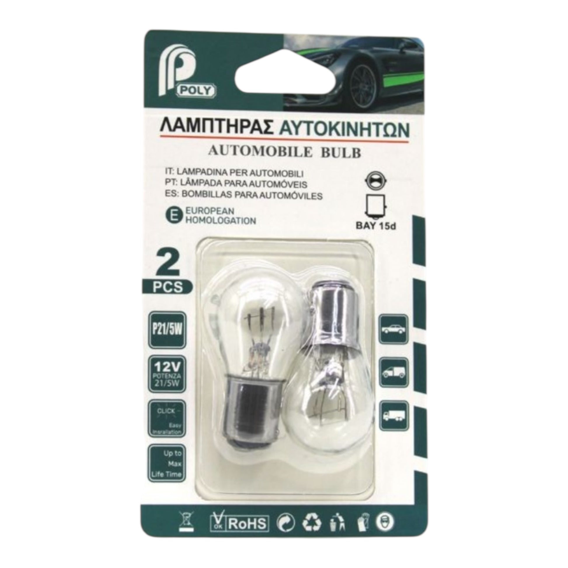 Ο λαμπτήρας αυτοκινήτου P21/5W BAY15d παρέχει διπλή λειτουργία φώτων – στάθμευσης και φρένων – με θερμό φως και μεγάλη διάρκεια ζωής. Εύκολη τοποθέτηση τύπου “CLICK” και ευρωπαϊκή έγκριση.