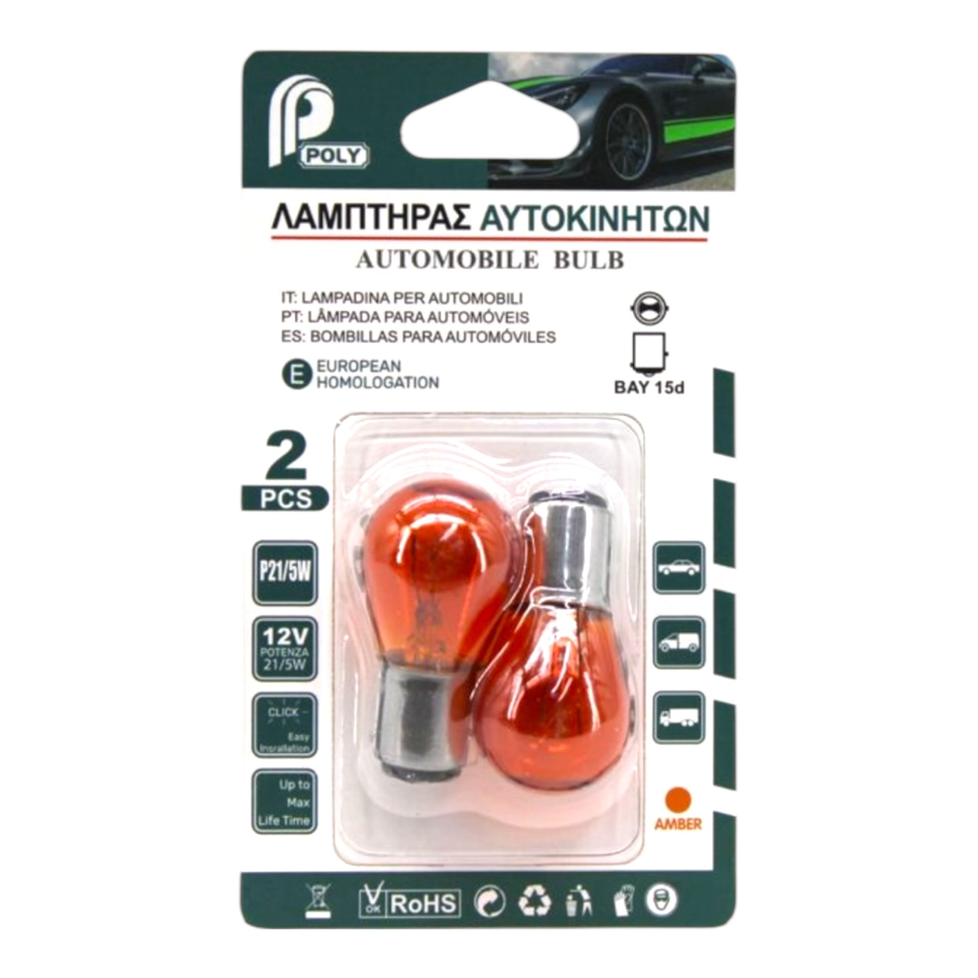 Λάμπες Αυτοκινήτου & Μοτοσυκλέτας P21/5W Κίτρινο 12V 2τμχ