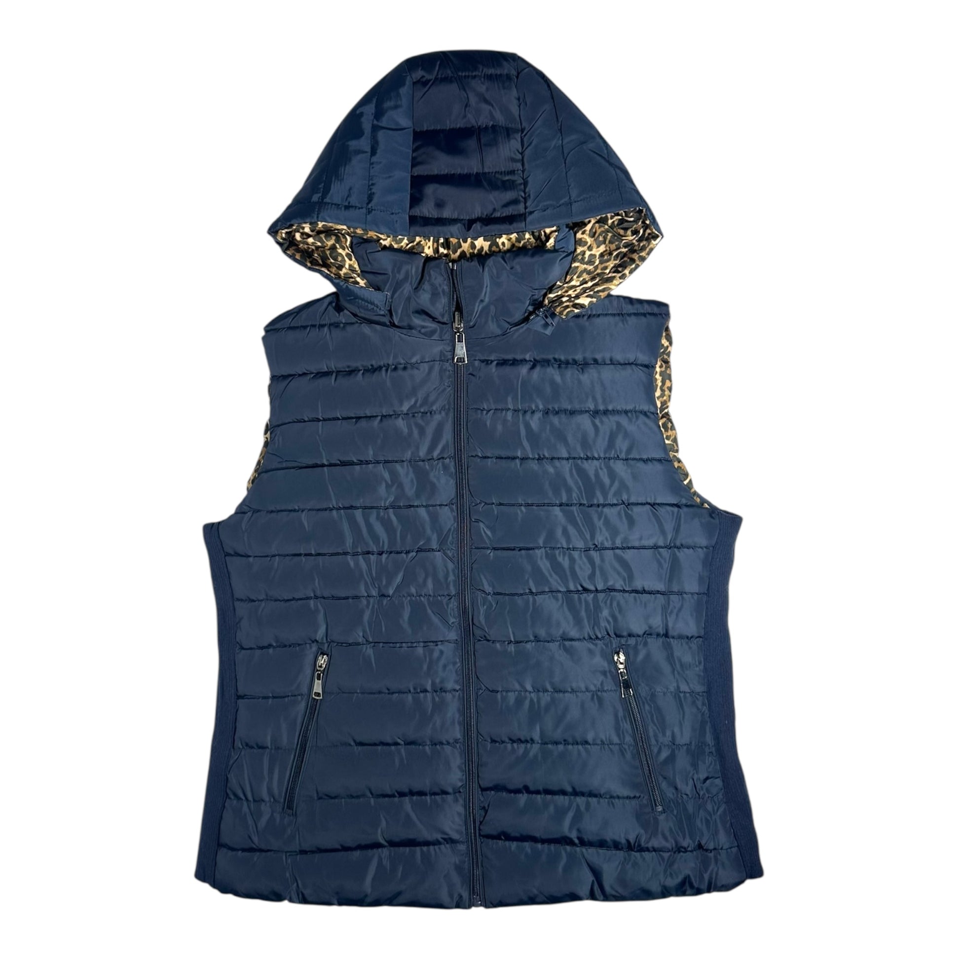 Το γυναικείο αμάνικο μπουφάν συνδυάζει πρακτικότητα, ζεστασιά και μοντέρνο στυλ. Διαθέτει αποσπώμενη κουκούλα και μοναδικό διπλής όψης design – από τη μία πλευρά κλασικό μονόχρωμο, από την άλλη με animal print (λεοπάρ) για πιο fashion εμφανίσεις. Είναι ελαφρύ, ανθεκτικό και εύκολο στη φροντίδα. Διατίθεται σε τρία χρώματα: μαύρο, κόκκινο και μπλε.