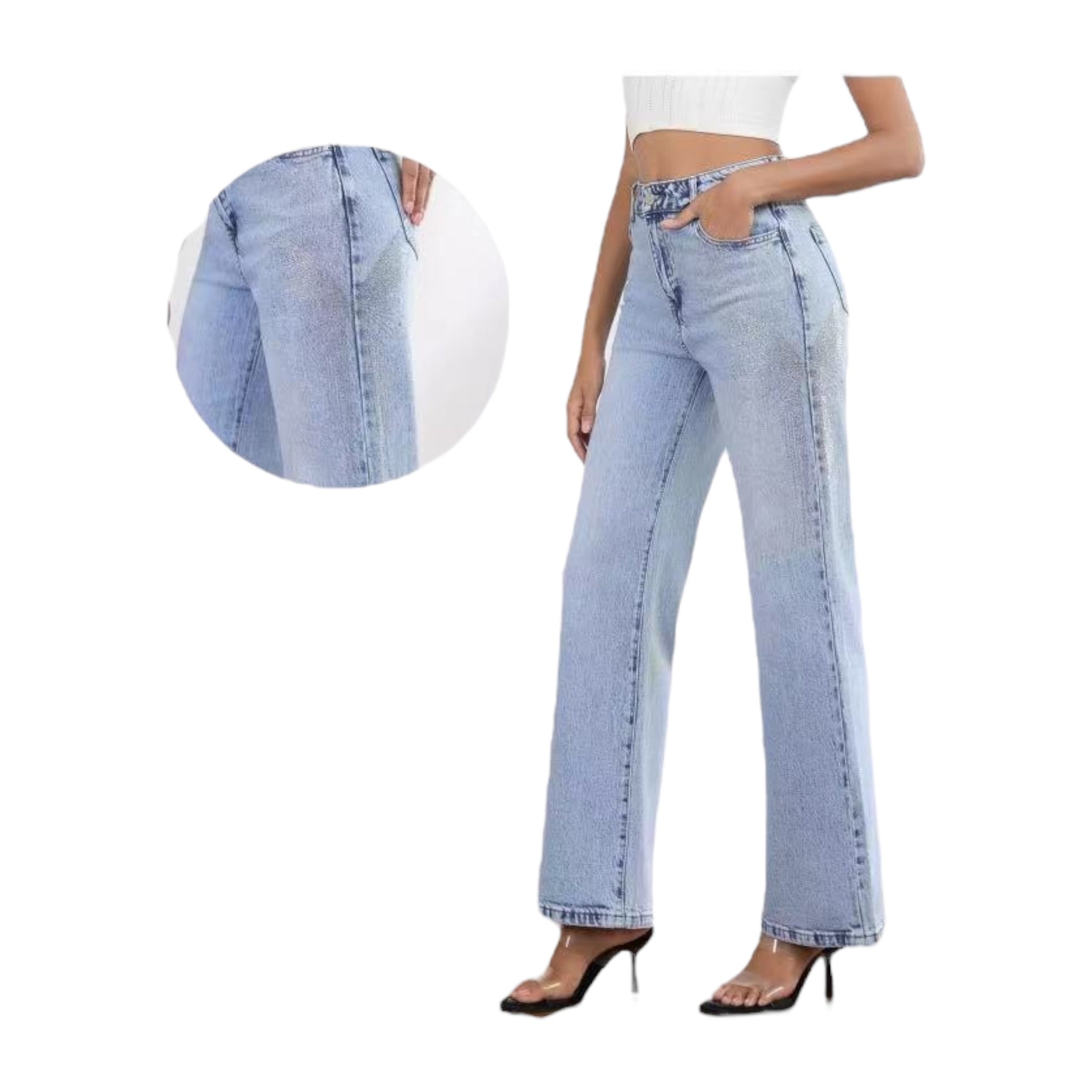 Το γυναικείο τζιν παντελόνι MISS GOOD MG7156 σε γραμμή Wide Leg (Φαρδιά) συνδυάζει την κλασική denim αισθητική με μια λάμψη πολυτέλειας, χάρη στις διακριτικές λεπτομέρειες με strass (πεταλούδα) στα πλαϊνά. Η φαρδιά και ίσια γραμμή του (Straight Wide Leg) προσφέρει άνεση και μια σύγχρονη σιλουέτα που κολακεύει κάθε σωματότυπο.